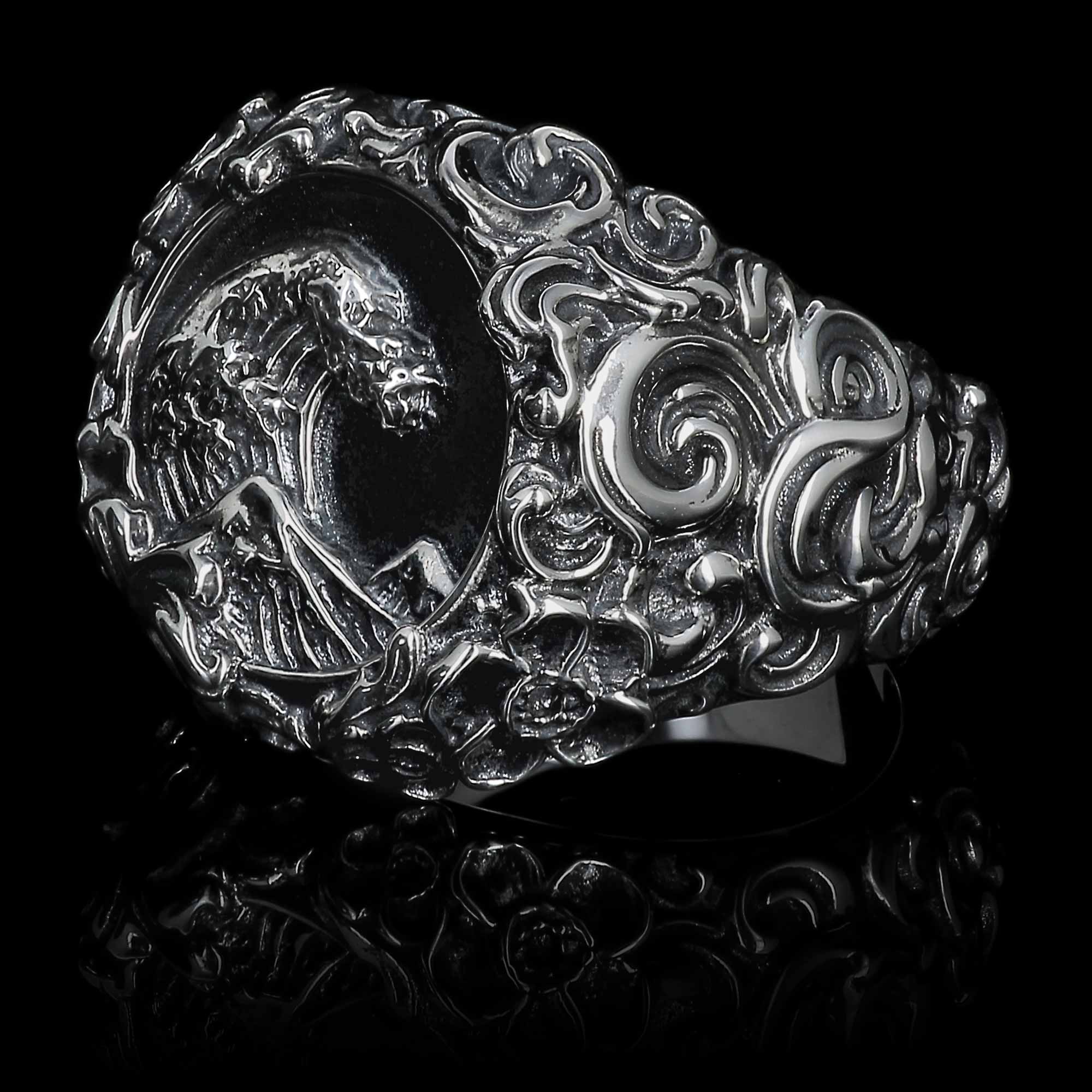 La bague "Hokusai” n’est pas qu’un simple bijou ; c'est une œuvre d'art. Le design détaillé au dos de la bague assure un ajustement confortable, tout en contribuant à la légèreté de la bague. Cette attention minutieuse aux détails fait de la chevalière “Hokusai” un véritable chef-d'œuvre, capturant l'esprit de rébellion et la force sublime de la nature, encourageant ceux qui la portent à embrasser la beauté sauvage et indomptée de la mer.