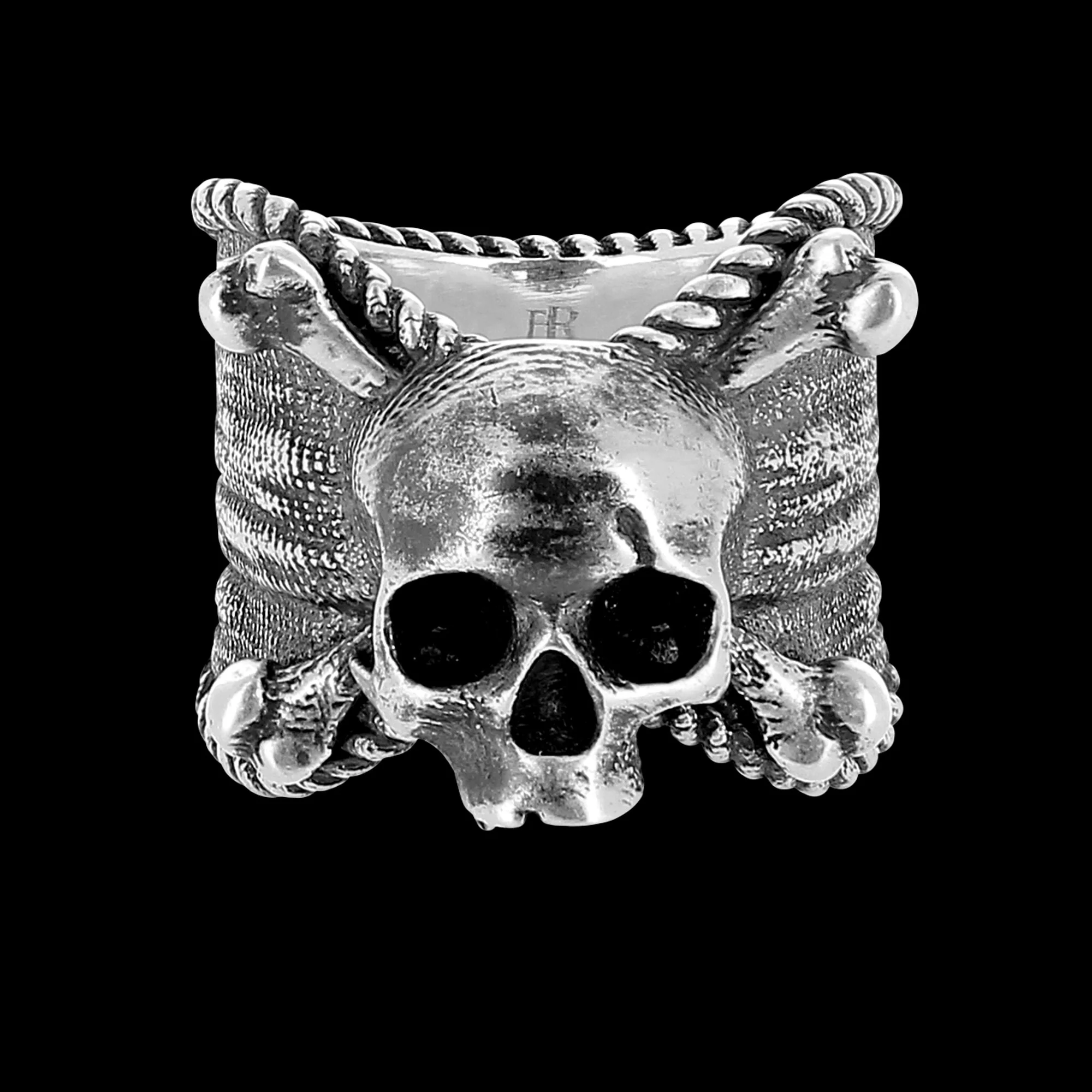 La Marque du Pirate présente une tête de mort, symbole classique de la piraterie, forgée dans le métal. La légende veut que la marque du pirate ait été fabriquée à l'origine par un capitaine pirate notoire qui la portait en signe de son autorité et de ses prouesses en haute mer. L'anneau était censé porter chance à son porteur et faire naître la peur dans le cœur de ceux qui le croisaient. Qu'elle soit portée comme une pièce d'identité ou exposée pour alimenter la conversation, cette bague constitue un lien tangible avec le monde passionnant et dangereux de la piraterie.