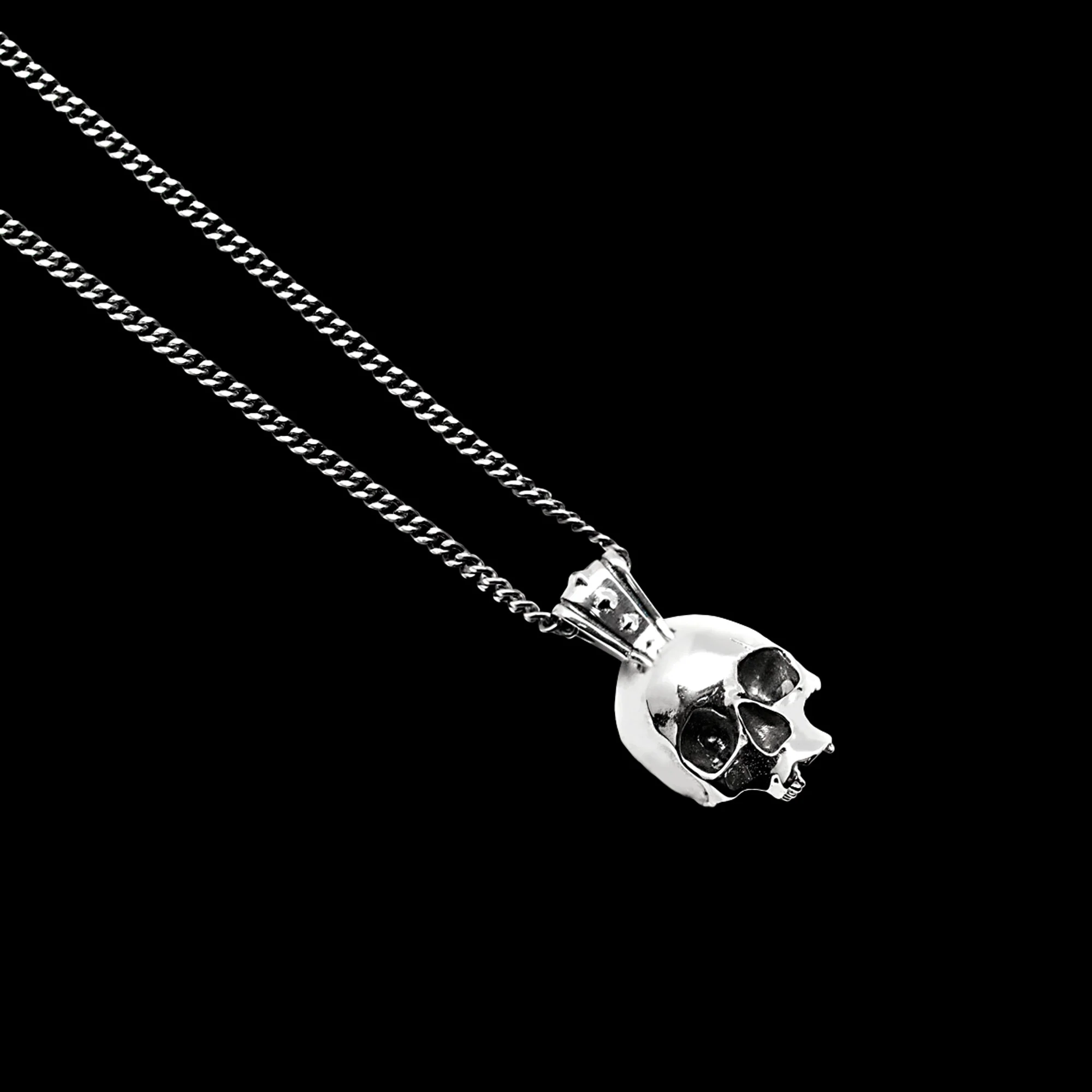 Le Hamlet est notre skull emblématique monté en pendentif en argent 925 patinée à la main et fabriqué en France. Chaîne vendue séparément.